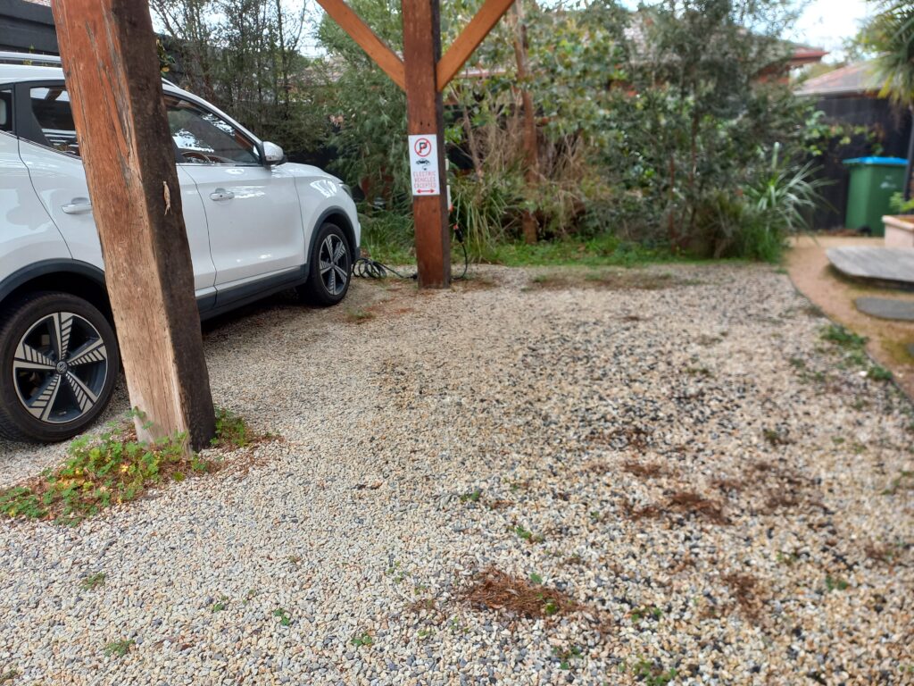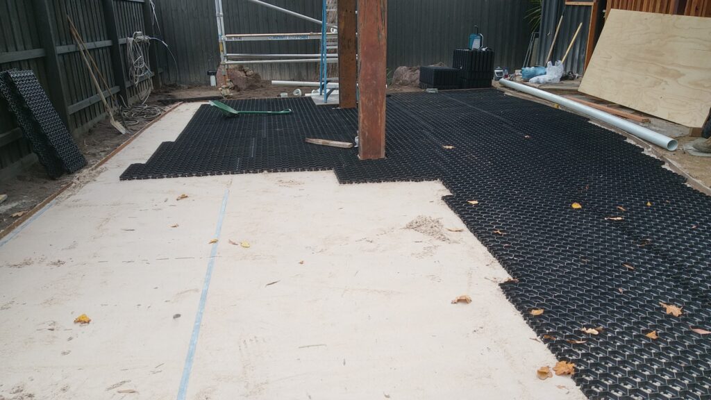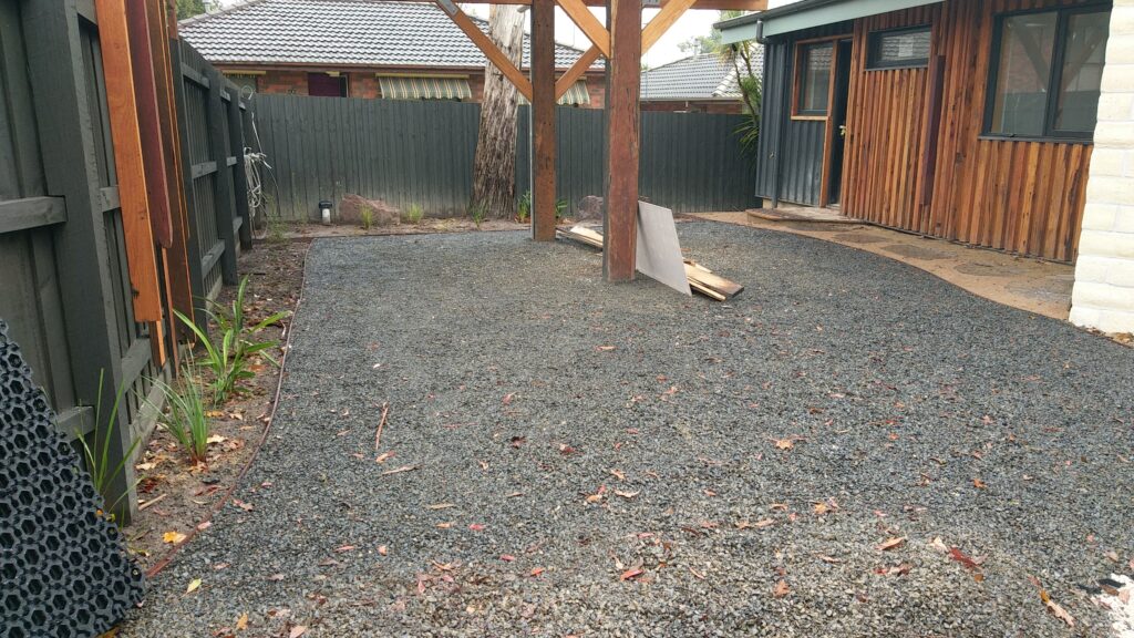 While designing the carport that was being installed next to our house, we decided not to use a traditional concrete surface. Concrete would suffocate the ground underneath and increase stormwater run-off from the property. Our theory was there’s no chance of rainwater becoming contaminated stormwater if it’s able to soak into groundwater.